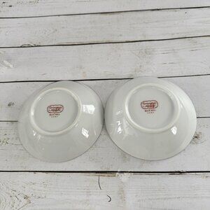 This lot of 2 Noritake Fine China Blue Hill soup cereal bowls with a silver trimmed edge features a contemporary design with a flower theme. Made of white porcelain with a glossy finish, these round bowls are perfect for all occasions. Produced in Sri Lanka in the late 20th century, these decorative soup bowls add a touch of elegance to any table setting. The printed backstamp ensures the authenticity of this high-quality bowl set from the renowned Noritake brand. Ideal for serving up soup or cereal in style, these bowls are a must-have for any collector of decorative cookware and serveware.