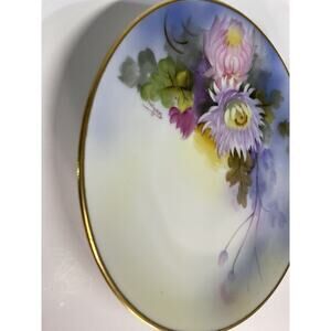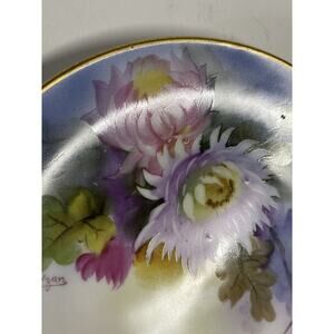 Noritake Hand Painted Porcelain Plate Floral Signed Howzan Chrysanthemums Lotus
