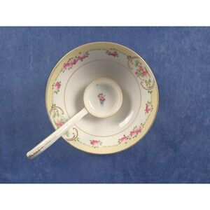 Noritake Hand Painted Soup Set / Sauce Bowl / Condiment Bowl With Ladle And Saucer. Made In Japan.