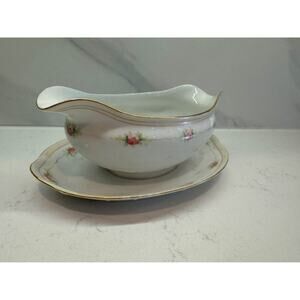 Noritake Handpainted Nippon Pink Floral Gold Graby Boat Dish
