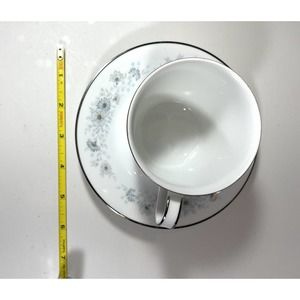 Noritake Japan Inverness Tea Coffee Flat Cup & Saucer 6716 Blue Flower Platinum