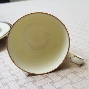 Beautiful Blue, Green, and Burgundy Bands, Gold Scrolls, Gold Rim on a cream background