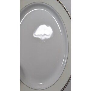 Elegant and functional for serving meals, this oval platter features a timeless design with gold and black trim, adding sophistication to your table.