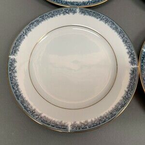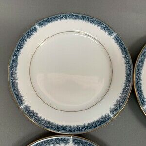 Noritake Legendary Edgerow Salad Plates Blue White Gold Trim 4078 Lot of 4