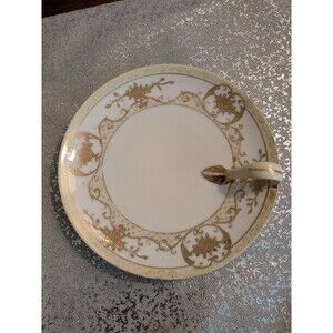 This vintage Noritake M Vtg Lemon Handled Plate Server features a beautiful handpainted floral design with gold trim, making it a perfect addition to any collection or kitchen decor. Made to serve lemon slices, it also could be a beautiful trinket dish for jewelry. It is vintage-antique and in great shape for its age showing minor wear. Crafted from high-quality porcelain and bone china, this round plate with a 6-inch diameter is ideal for all occasions and adds a touch of elegance to any table setting. The glossy finish and mid-century modern style add a unique charm to this piece, which was made in Japan and is sure to be a conversation starter.