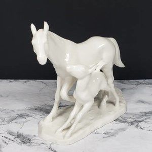 This vintage NORITAKE bone china figurine of a mare and foal is a beautiful piece of Japanese craftsmanship. It is made of fine white porcelain and is an original Nippon Toki Kaisha piece. A classic addition to any home or collection.