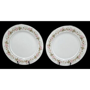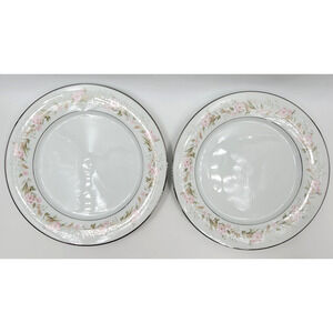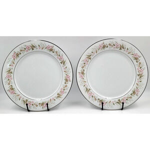 Noritake Mayflower 10 1/2" Dinner Plates 2351 Pink Blue Flowers Silver set of 2