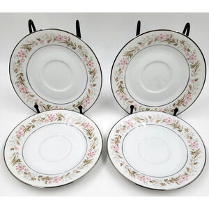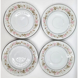 Noritake Mayflower 2351 Saucers Only Silver Trim Pink Blue Floral Set of 4