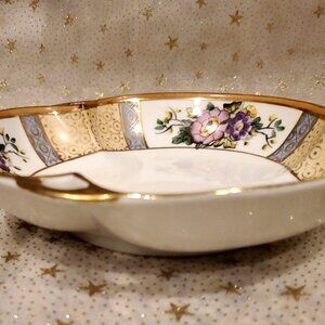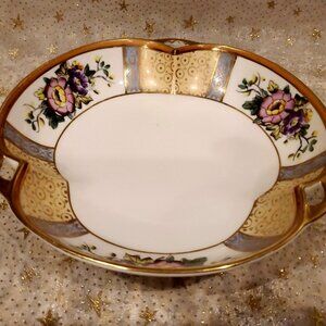 Noritake Nippon Hand Painted Tri- Handled Dish Bowl Floral & Gold Candy Dish 7"