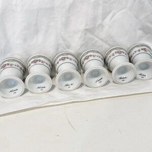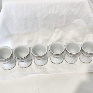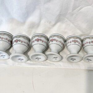 Noritake Porcelain Egg Cups Pink Roses Floral Silver Rim Set of 6 Japan Vintage