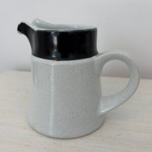 Noritake Primastone "Malaga" pattern creamer pitcher Black & White Japan Retro. Enjoy the artful shape of this creamer! It is sleek, retro, farmhouse, and mid century all at once. The look and feel of this creamer can match a plethora of design aesthetics and will look great styled up. It is in great vintage condition with a clean interior.