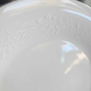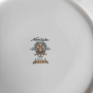 Noritake Reina 6450Q White With Embossed Flowers Silver Rimmed 8". 1 plate has a chip. I will include that one for free for a total of 4 plates