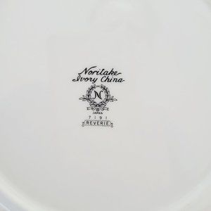 This Noritake Reverie Green Trim Salad Plates features an off-white base with a spring wildflower and butterfly pattern. Ideal for spring or summer dishes, it's made in Japan and measures 8.25".