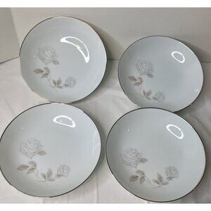 set of four Noritake Rosay Fruit Dessert Bowls #6216 Gray Rose Platinum Trim Japan 5.5”.