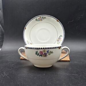 Noritake Sheridan Bouillon Cup Saucer Set of 6 Double Handle Art Deco