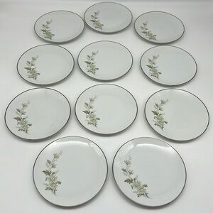 Noritake Soroya 6853 Dessert Plate 6.25” Light Green Daisy Platinum Banded