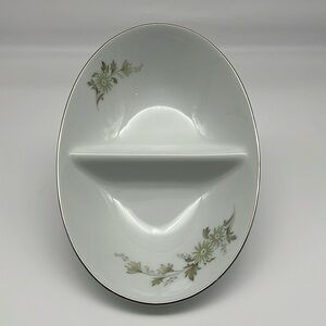 Noritake Soroya 6853 Divided Oval Serving Dish Light Green Daisy Floral Pattern