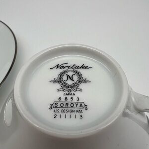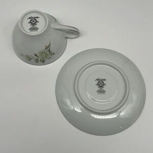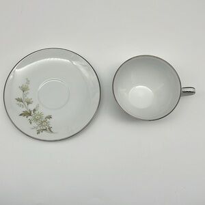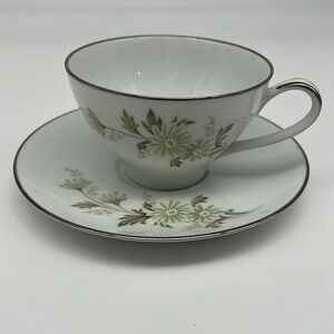 Noritake Soroya 6853 Flat Cup & Saucer Set Light Green Daisy Platinum Banded