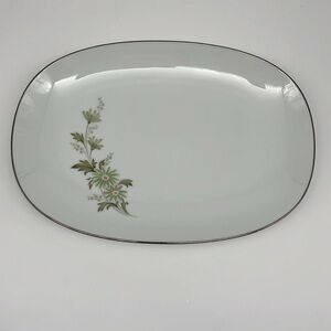Noritake Soroya 6853 Oval Serving Platter Light Green Daisy Simple Floral Pattern