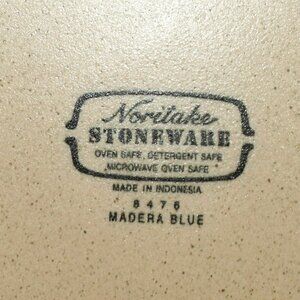 Elevate your dining experience with the vintage Noritake Madera Blue dinner plate, a genuine piece of art pottery from Japan. Crafted in the 1990s, this 10 1/4" stoneware plate features an elegant blue and brown Madera Blue pattern, bringing a touch of sophistication to any table setting. This plate is not only a visually striking piece but also practical, being both microwave and oven-safe. Its glossy finish and robust stoneware material ensure durability, while the round shape complements any occasion. An original production from the late 20th century, it bears the distinctive printed backstamp confirming its authenticity.