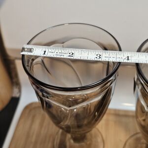 Like new. Enhance your dining experience with this elegant vintage set of 2 tawny brown glass goblets. Perfect for any occasion, these goblets add a touch of sophistication to your table setting. Measurements are in pics. Perfect size for your glass of sweet iced tea!
