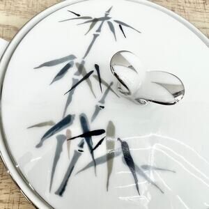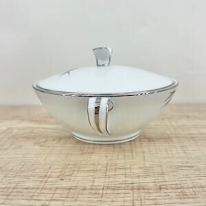 Noritake VINTAGE 1950s Fine Japanese Porcelain Sugar Bowl Handpainted Bamboo with Platinum Trim #2133 B08