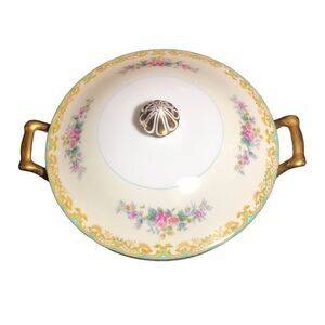 Noritake Vintage Handpainted Porcelain Covered Serving Bowl Floral And Gold