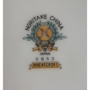 Beautiful wheat spray at center in shades of black, gold and gray with a gold trim on a white background. This stately tableware design is truly timeless! The china feels delicate and light to the touch, such an exquisite set. Noritake Wheatcroft pattern, Oval Vegetable Bowl Beautiful, was produced between 1957 - 1965, the Pattern Number: 5852, Made in Japan.