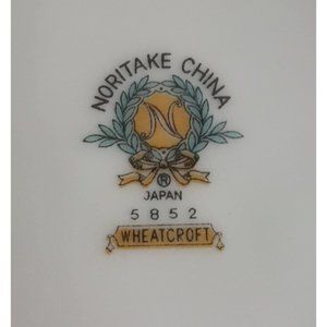 Beautiful wheat spray at center in shades of black, gold and gray with a gold trim on a white background. This stately tableware design is truly timeless! The china feels delicate and light to the touch, such an exquisite set. Noritake Wheatcroft pattern, Oval Vegetable Bowl Beautiful, was produced between 1957 - 1965, the Pattern Number: 5852, Made in Japan.