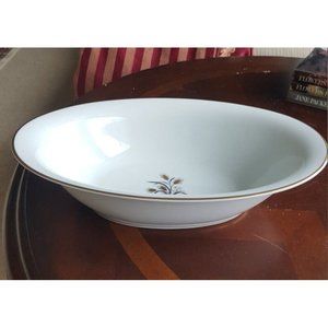 Noritake Wheatcroft Oval Vegetable Bowl Beautiful Gold Trim Gray Leaves Christma