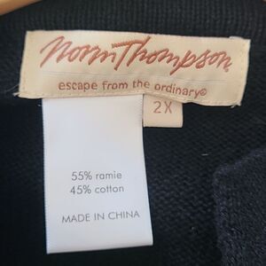 Norm Thompson Black Cotton Blend CARDINAL BIRD Beaded Novelty Sweater Women's 2X