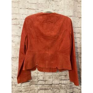 Norm Thompson Jacket Womens Large Leather Rust Orange Satin Lined Scalloped Edge