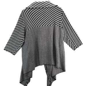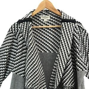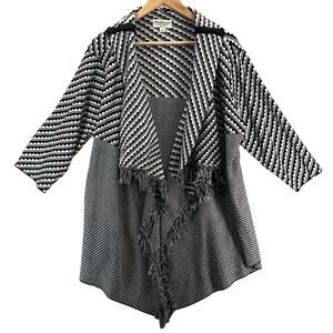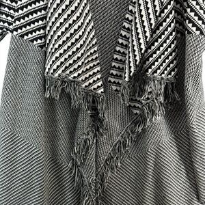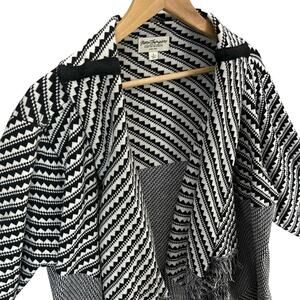 Norm Thompson Open Cardigan Black White Fringe Shaw Sweater Women Large