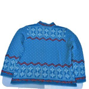 Norm Thompson Outfitters Fair Isle Sweater Embroidered Cotton Silver Metal Clasp