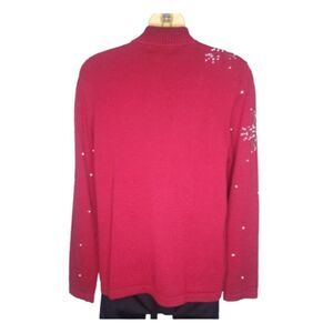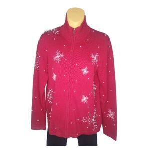 Norm Thompson Red Zip Up Cotton With Embroidered & Beaded Snowflakes SZ Small