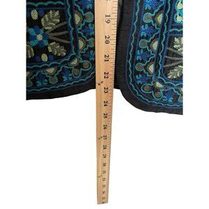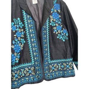 Norm Thompson Silk Jacket M Petite Floral Embroidered Boho Open Front Blazer