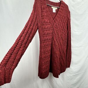 Norm Thompson Sweater Medium Open Knit Burgundy Red Textured Long Sleeve Holiday