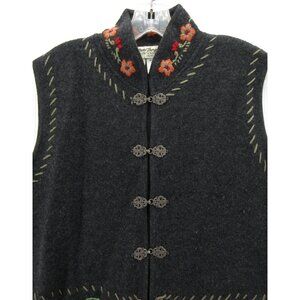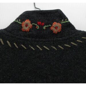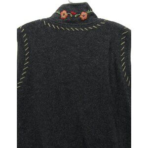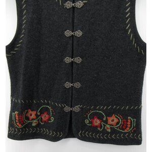 Norm Thompson Sweater Medium Wool Vest Cardigan Embroidered Toggle
