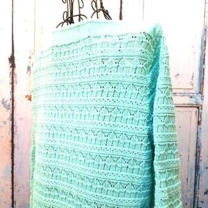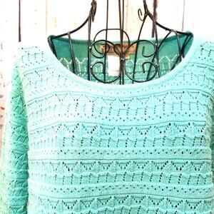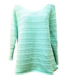 Norm Thompson Vintage Teal Blue Open Knit Sweater Size M Boho Light 3/4 Sleeve