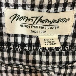 Norm Thompson Womens Coat Black White Check Button Up Long Sleeve Crew neck Sz XS