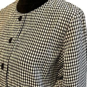Norm Thompson Womens Coat Black White Check Button Up Long Sleeve Crew neck Sz XS