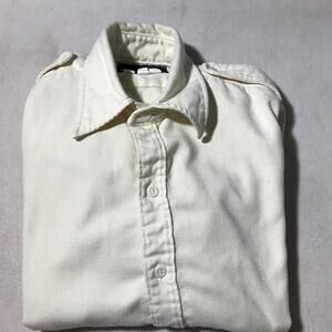 Norm Thompson mens L ivory cream field shirt jacket long sleeve button up layer