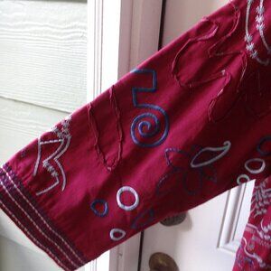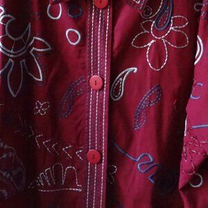 Norm Thompson women's size 2X, light weight jacket burgundy / blue embroidery