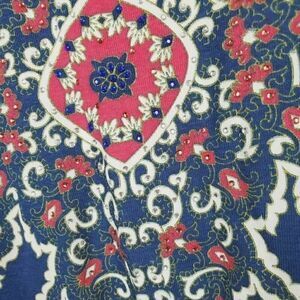 Norm Thompson Womens Blouse Blue Southwestern Scoop Embellished 100% Cotton S