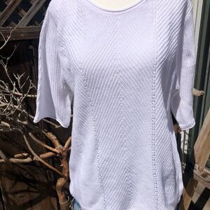 Norm Thompson knit Half Sleeve white Textured Sweater