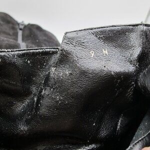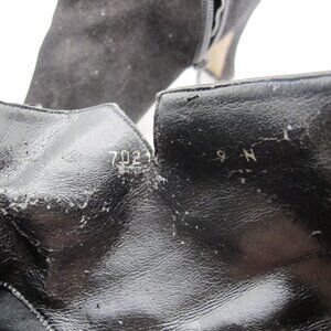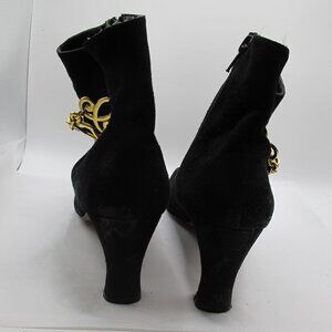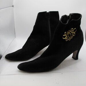 Norma B black suede ankle boots with gold accent and 3 inch heel 9N