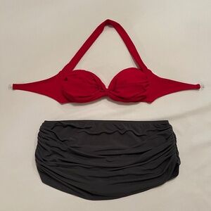 Norma Kamali Bill Ruched Bikini Swim Top Halter Red Sz M