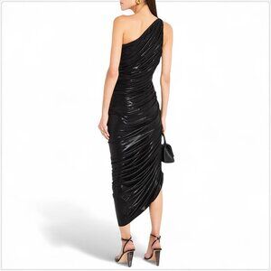 Norma Kamali Black Diana Metallic Ruched One-Shoulder Gown Lame Midi Dress M 38