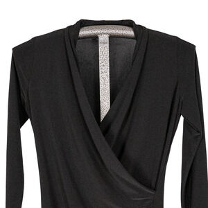 Pre-Owned (Excellent Condition): Norma Kamali Black, Faux Wrap Dress; Size MEDIUM; Stretch Knit Fabric: 94% Polyester, 6% Spandex; Minimalist Career Capsule Classic; Style #NK410603