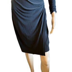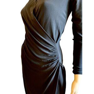 Norma Kamali Black Faux Wrap Dress Size XS Timeless Vintage Draping Elegance